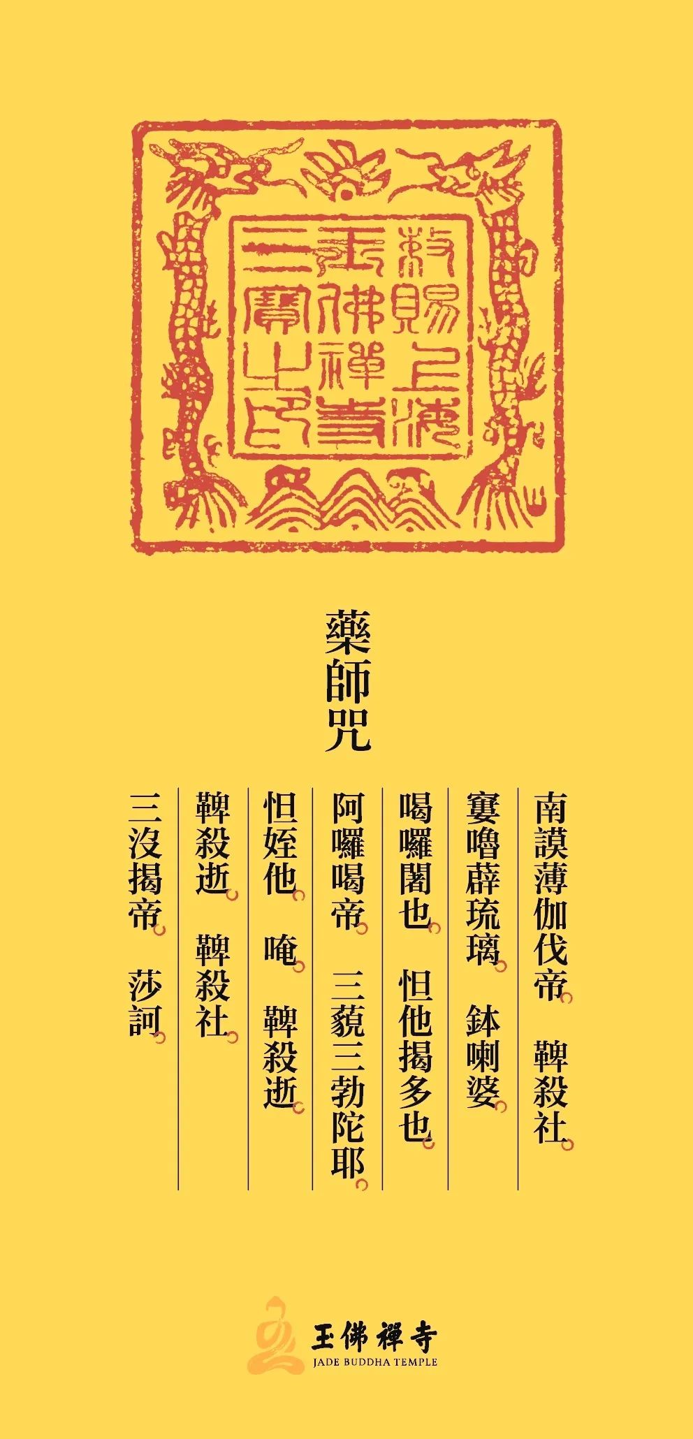 新年伊始,让我们一起持诵《药师咒》七遍至一百零八遍,祈愿药师佛护佑大家新的一年身心安康、福寿绵长、远离灾厄、一切无碍!